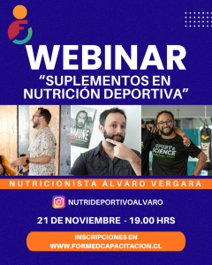 En este webinar exclusivo, el reconocido Álvaro Vergara, referente nacional en nutrición deportiva, te entregará herramientas prácticas y basadas en evidencia científica para comprender qué suplementos realmente funcionan, cuándo utilizarlos y cómo integrarlos de forma segura en distintos objetivos de entrenamiento.